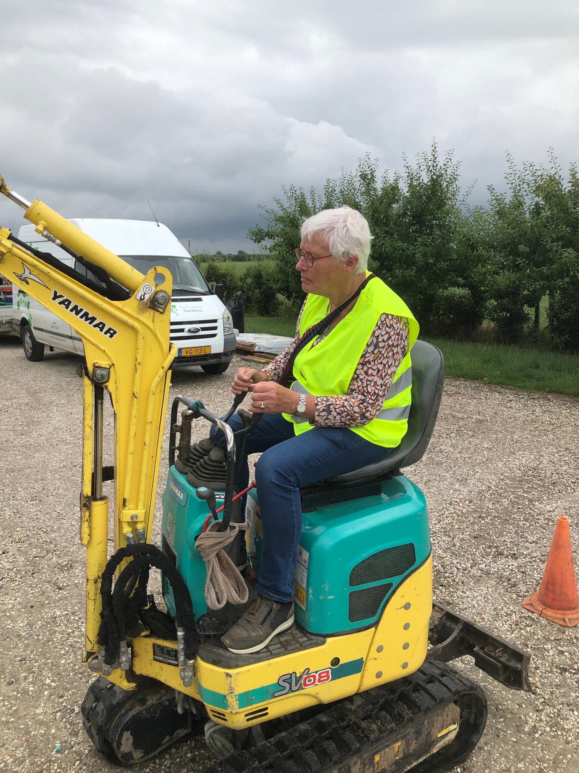 Wie staat er niet te kijken als zo een machine aan het werk is. Ze zijn er van mini voor in de tuin tot shovels die 100 ton in één keer pakken. Vandaag de kans er een keer in te zitten en mee te werken. Dat valt echt niet mee maar is hartstikke leuk. Terwijl twee mensen tegelijk op de kranen hun kunsten kunnen vertonen, wordt aan de rest van de groep duidelijk gemaakt hoe je 18!! medewerkers aan de gang houd in een hoveniersbedrijf. En er zijn prachtige foto’s en filmpjes over tuinaanleg en het belang van groen.
